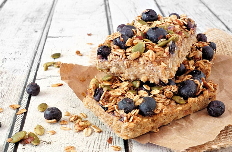 Tip: Feel free to swap the blueberries for your favorite dried fruit and the pistachios for your favorite nut—but keep the maple syrup as is; we found using less than ½ cup resulted in crumbly bars