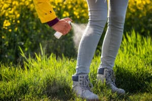 Insect repellents that contains DEET (Diethyl-meta-toluamide) can be sprayed to help repel ticks. Products containing DEET can be used directly on your skin or clothing. Be sure to follow all instructions on the label carefully when applying DEET. Permethrin is another popular insect repellant and can be used on clothing, shoes and camping gear. It should not be applied to the skin. More information on choosing tick repellents and using them safely can be found in the MDPH Public Health Fact Sheet on Tick Repellents. If you are outside a lot with your pets, talk to your veterinarian about the best way to protect them from ticks, since they can also bring ticks into your home.