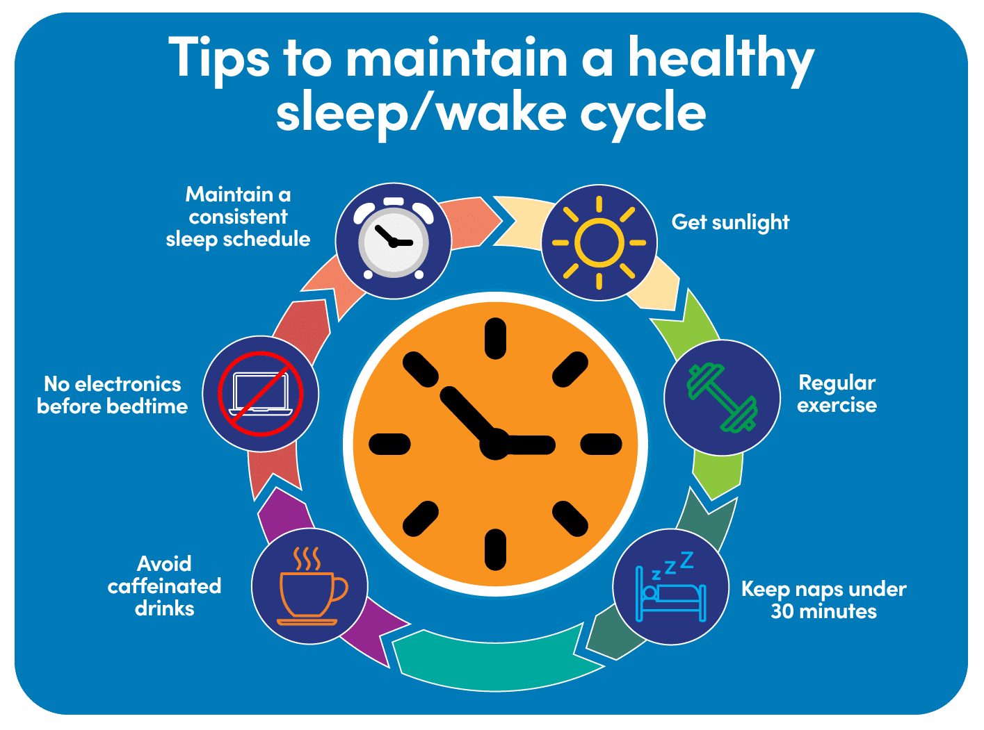Enjoying a better night’s sleep starts with a healthy daily routine. And that includes both eating and sleeping on a regular schedule. Give it a try – everyone enjoys their day more if they get a good night’s sleep!