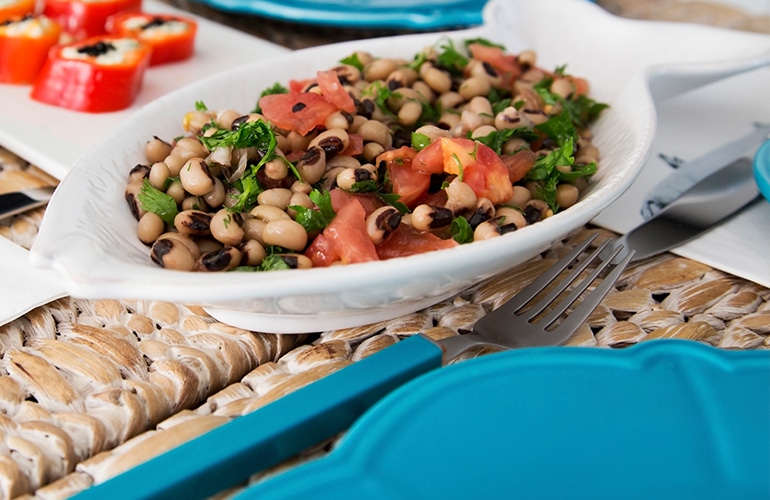 New Year’s Black-Eyed Peas and Greens Serves 6 Ingredients ½ lb. dried black-eyed peas (1¼ cups) 1 bay leaf 2 Tbs. red wine vinegar 1¾ tsp. salt, divided 1 …