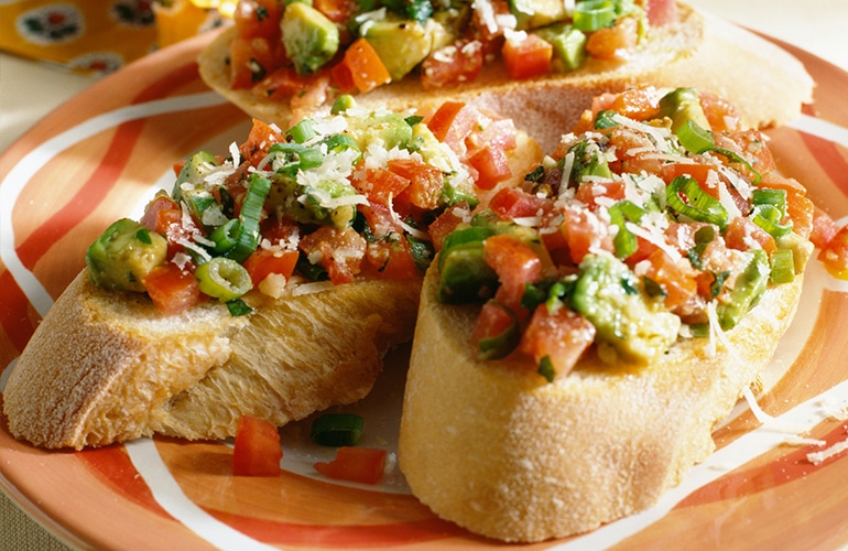 Avocado Breakfast Bruschetta Serves 4 Ingredients 1 ripe fresh avocado 2 medium tomatoes 1 green onion ½ cup chopped fresh basil, plus 2 Tbsp for garnish 4 eggs, hard-boiled …