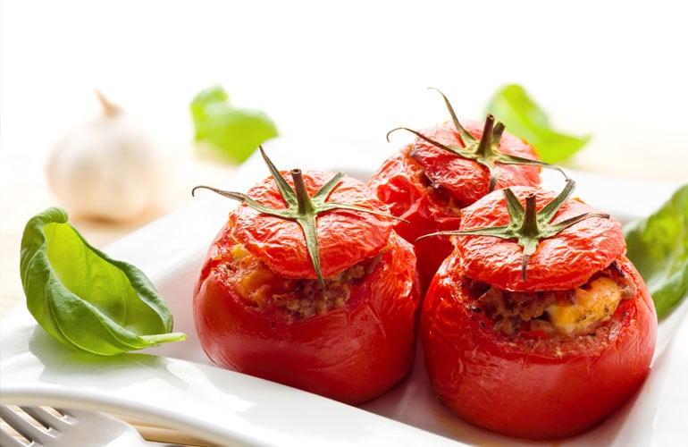 End of summer vegetables zucchini, corn, basil and tomatoes for a delightful way to eat your protein and vegetables. Ricotta-Basil Stuffed Tomatoes Makes approximately 4 servings Ingredients 4 …