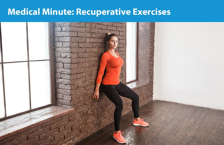 Pete Valera, PTA demonstrates recuperative exercises that can be done at home.