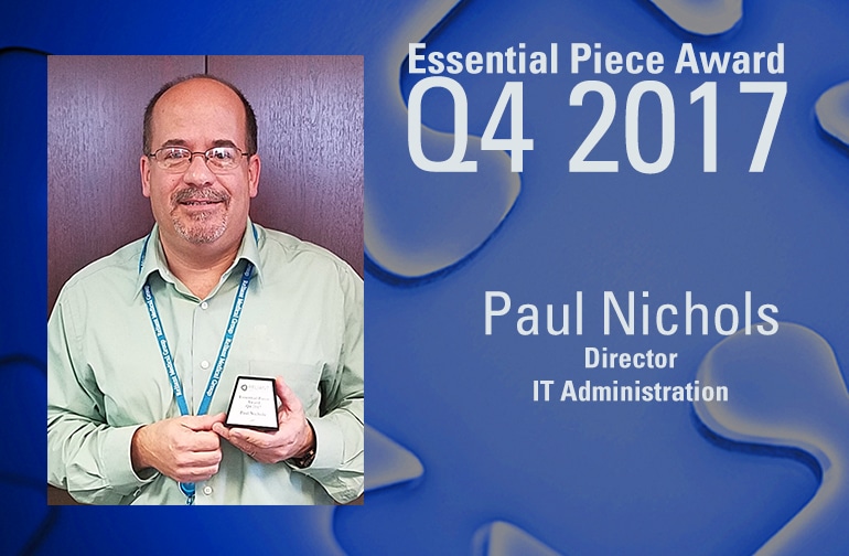 Each quarter, one employee is chosen to receive our “Essential Piece Award.” For Q4 of 2017, our winner is Paul Nichols! Congratulations, Paul, and thank you for all that you …
